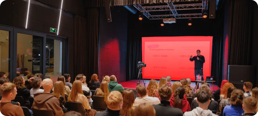 Організовуємо мітапи та конференції для спеціалістів, щоб обмінюватись досвідом та разом драйвити українське ІТ.